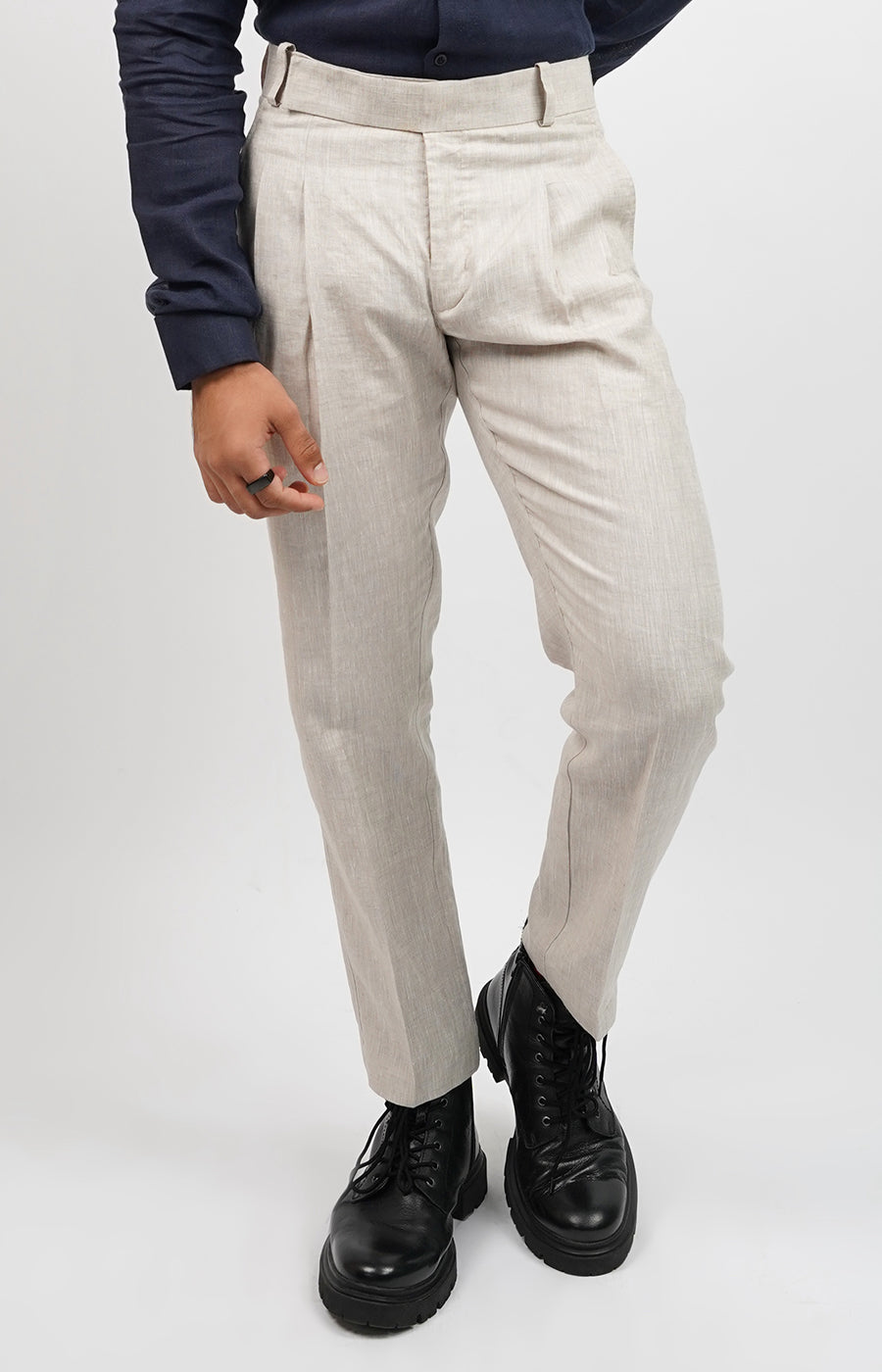 Step into effortless sophistication with these grey pleated linen trousers, designed for modern men who value both style and functionality. Crafted from breathable, premium linen fabric, these trousers feature a clean, tailored look with a high-waist pleated front and a flattering tapered leg. Ideal for both formal and casual occasions, they pair seamlessly with shirts or polos to create a refined yet relaxed outfit. Complete your look with loafers or brogues for a versatile style upgrade. Composition - 100% linen Shipping all over India in 7 days. Returns eligible within 7 days of purchase. |