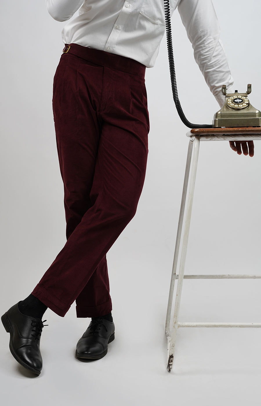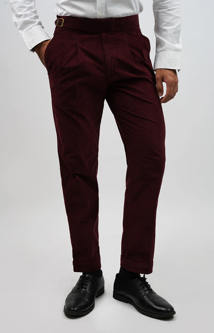 These corduroy Gurkha pants redefine classic menswear with a contemporary twist. The high-waisted design and pleated front provide a sophisticated aesthetic, while side adjusters eliminate the need for a belt, ensuring a streamlined look. The corduroy fabric boasts a soft texture and superior craftsmanship, perfect for adding depth and dimension to any outfit. Pair these versatile trousers with a tucked-in shirt or a casual tee for effortlessly stylish ensembles. Composition - Corduroy 98% cotton, 2% elastane Shipping all over India in 7 days. Returns eligible within 7 days of purchase. Note - First wash dry clean. |
